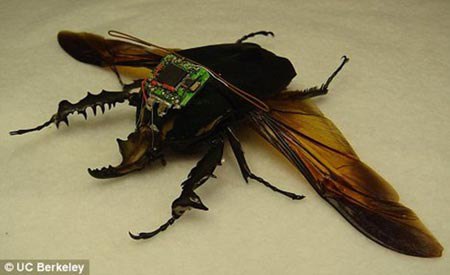 Trước đây, nhóm nghiên cứu của kỹ sư điện tử Hirotaka Sato, Đại học California ở Berkeley cấy thành công những điện cực vào năo bọ cánh cứng cho phép kiểm soát chuyển động bay của côn trùng. Hệ thống gài trên lưng con bọ là thiết bị kích thích thần kinh, thiết bị kích thích cơ, một bộ vi kiểm soát để truyền và nhận tín hiệu và một nguồn năng lượng.