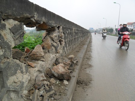 Trên phần trạch đê vỡ nát nham nhở có đoạn kéo dài cả chục mét, cỏ mọc um tùm nhưng cũng có đoạn mới nứt vỡ, đất cát văng tràn ra cả lòng đường quốc lộ. Điều này hiển nhiên cho thấy hiện tượng trên diễn ra khá lâu mà không được ngăn chặn. “Đê bị vỡ nát, bị xâm hại thế này nếu có bão lụt chắc gì đã cản được…”, một người dân bày tỏ bi quan.