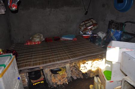 Bên trong ẩm thấp, dột nát là nơi ở của cặp vợ chồng nghèo.