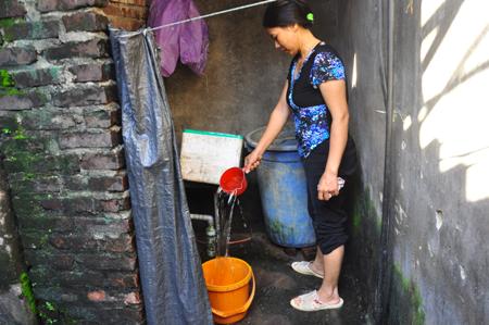 Theo cô Hòa, ở dãy nhà tạm bợ của cô có 7 phòng với gần 30 nhân khẩu. Tuy nhiên chỉ có chung một nhà tắm và vệ sinh. “Gần 30 người tắm chung một nhà tắm bé xíu, không có cửa kiên cố phải che tạm bằng bao tải nilon. Chúng tôi ở đây tất cả dùng nước giếng khoan lên nhiều hôm nguồn nước bơm lên tanh và mùi khó chịu lắm nhưng vẫn phải dùng vì nếu không dùng cũng chẳng lấy đâu ra nước để sinh hoạt, nấu nướng. Phòng trọ thì ẩm mốc, mưa thì dột mà nắng thì nóng rát”, cô cho hay.