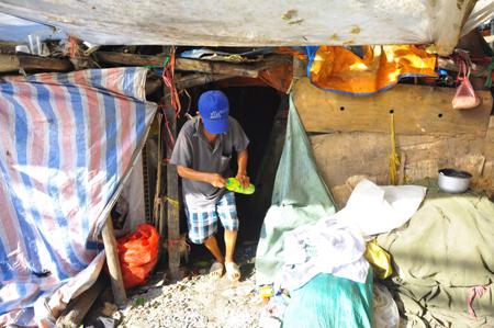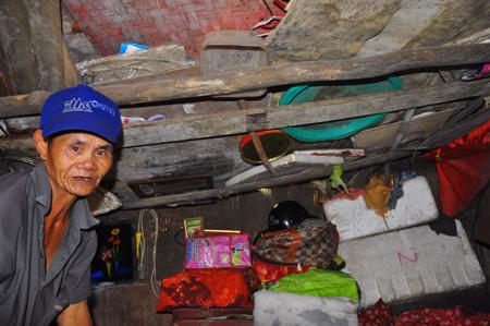 "Ở đây nắng nóng mấy vợ chồng tôi cũng chịu được. Chỉ sợ nhất là hôm nào trời mưa, lúc ấy hai vợ chồng chỉ biết mặc áo mưa ngồi trên giường chờ trời tạnh”, ông Hùng buồn rầu kể.
