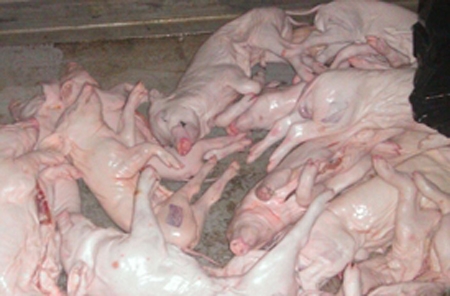 Ngày 13/7, khi kiểm tra xe tải chở hàng đông lạnh mang biển kiểm soát 52ND - 3532 do tài xế Nguyễn Đ́nh Điển (SN 1974, quê Hưng Yên) khi xe này đang giao hàng ở gần khu công nghiệp Sóng Thần (B́nh Dương), lực lượng chứng năng phát hiện 10 thùng xốp chứa gần 100 con heo sữa bốc mùi hôi thối.