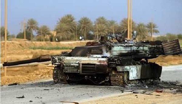 Một chiếc xe tăng M1A1 của Mỹ bị hỏa thần RPG-7 thiêu rụi.