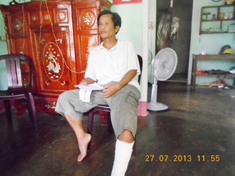 Anh Hoàng bị người nhà chồng của tình nhân đánh đến gãy chân, hiện chưa hồi phục.