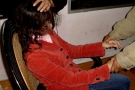 Từ cửa, hai vợ chồng chị nọ lật đật rẽ đám người vào ngồi cạnh cô. Một màn gặp gỡ giữa người âm và người dương diễn ra với đủ sắc thái tình cảm, lúc cười vui hớn hở, khi lại giận dữ, khóc lóc. Cuộc trò chuyện diễn ra hơn 15 phút thì “vong” bảo: “Thôi, ông đi đây”!… Và cô Bằng nhắm mắt lại, đờ đẫn, ngã ra… Mấy người ngồi gần đỡ lấy “cô”, phẩy quạt vào người… Chừng vài chục giây, cô lắc lắc đầu rồi tỉnh lại bình thường. cô lấy hai tay vuốt mặt, xoa mắt một lát, rồi cô lại bắt đầu cầm các tờ giấy đã “đăng ký” lên khấn để mời các vong khác về tiếp …