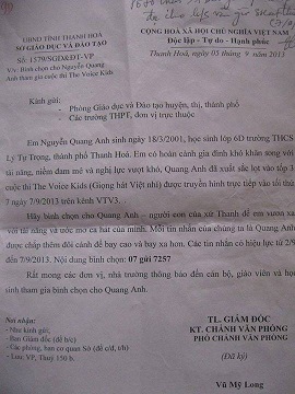 Sở GDĐT Thanh Hóa ra công văn chỉ thị bình chọn cho Quang Anh?