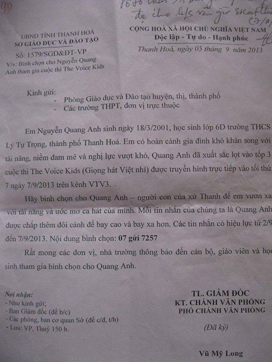 UBND Phường cũng ra công văn chỉ thị b́nh chọn Quang Anh