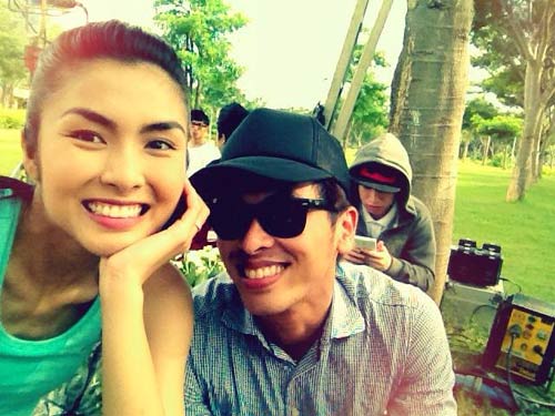 Hà Tăng mặc áo phông, quần short đi dã ngoại