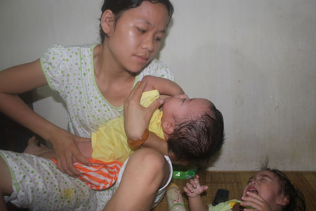 Người mẹ trẻ luôn phải vỗ về hai con với những giọt nước mắt nuốt ngược vào trong