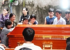 Thảm thương người mẹ ngã gục bên quan tài 2 con