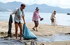 Ông Tây nhặt rác trên bãi biển Nha Trang