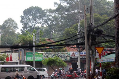 Những búi dây điện có mặt khắp các nẻo đường sài Gòn. Ảnh: Phương Minh/Người Việt.