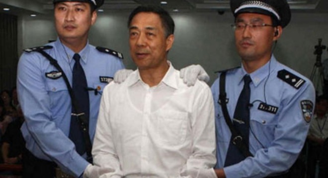 Bạc Hy Lai bị còng tay sau khi bị tuyên án .