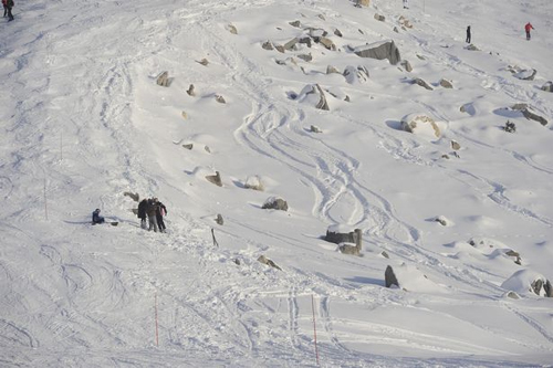 Đường trượt tuyết với bãi đá bên lề, nơi xảy ra tai nạn.