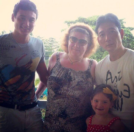 Thủ môn Văn Lâm (bên trái) cùng bố mẹ và em gái. Ảnh: VL.