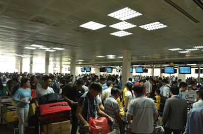 Cảnh chen chúc ở phi trường Tân Sơn Nhất trong những ngày đông đảo Việt kiều về quê ăn Tết.
