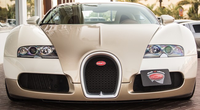 Chỉ có ba siêu xe Bugatti Veyron được xuất xưởng với tông màu vàng và trắng ngọc trai, một trong số đó đang được rao bán tại Dubai.