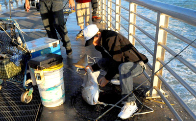 Thế là con cá được bỏ vào trong thùng xốp đông đá. Có người vui cũng lại có người buồn. Buồn là vì câu được cá lớn nhưng quá cỡ quy định đành phải thả lại biển. Nhưng đối với họ, thà thả lại còn hơn là bị phạt rất nặng, có khi cả cả mấy ngàn đô la.