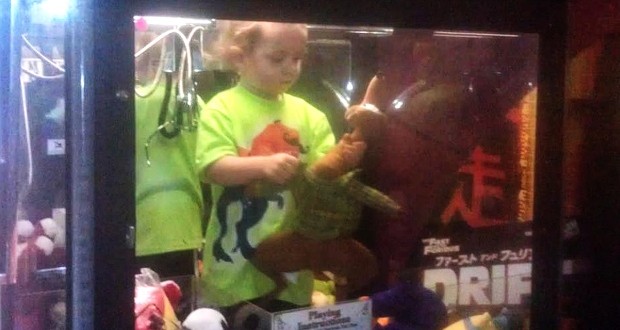 Một em bé 3 tuổi chui vào được máy gắp thú nhồi bông?