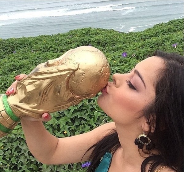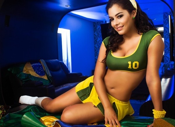 Bầu không khí sôi động ở Brazil lại nóng hơn bao giờ hết bởi bộ ảnh mừng World Cup của nữ fan cuồng Larissa Riquelme.