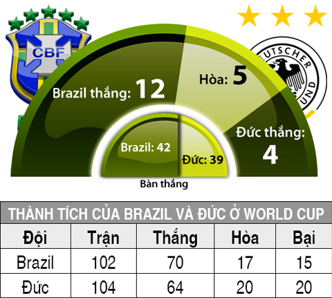 - Đức đang là đội giữ sạch lưới nhiều trận nhất tại World Cup 2014 (3 trận), trong khi Brazil đã để thủng lưới ở 4/5 trận gần nhất.