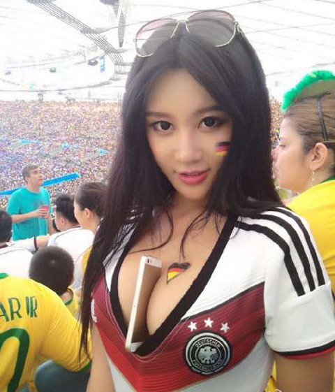 Đối thủ đáng gờm với nhà Davalos sẽ là cô nàng Fan Ling. Trên khán đài sân Maracana, bóng hồng xinh đẹp này đã gây chú ý khi nhét điện thoại giữa khe ngực khủng cổ vũ cho ĐT Đức trong cuộc đối đầu với ĐT Pháp ở vòng tứ kết. Hình ảnh của người đẹp châu Á gợi nhớ tới hành động tương tự cô nàng Larissa Riquelme, fan nữ nóng bỏng nhất tại World Cup 2010. Năm nay, Larissa cũng tới Brazil và dự thi người đẹp World Cup 2014 nhưng sớm phải ra về vì thân hình quá béo.