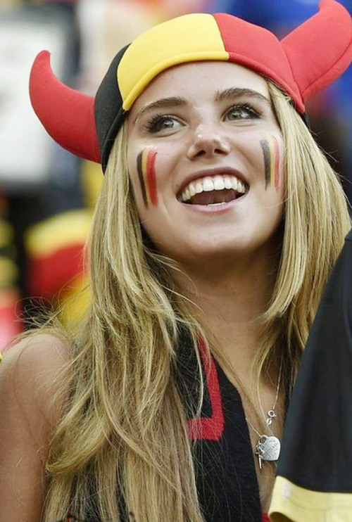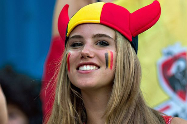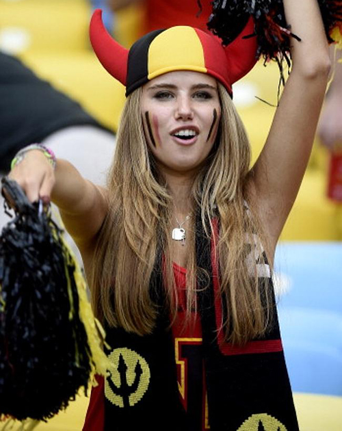 Vẻ đẹp trong sáng của fan nữ Bỉ trên khán đài. Ảnh: Mirror.