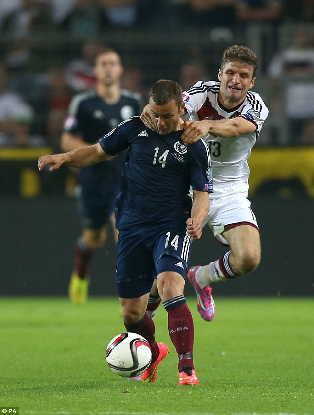 Tuy nhiên, Thomas Muller đã xuất hiện đúng lúc và dùng cả hai tay kéo vai khiến Maloney không thể tiếp tục đi bóng. Hành động tưởng chừng chỉ thấy ở bóng đá đường phố. Tuy hành động của chân sút đang khoác áo Bayern Munich rất phản cảm nhưng rõ ràng đã giúp các nhà ĐKVĐ thế giới thoát khỏi một trận hòa bẽ mặt ở lượt trận mở màn vòng loại Euro 2016.