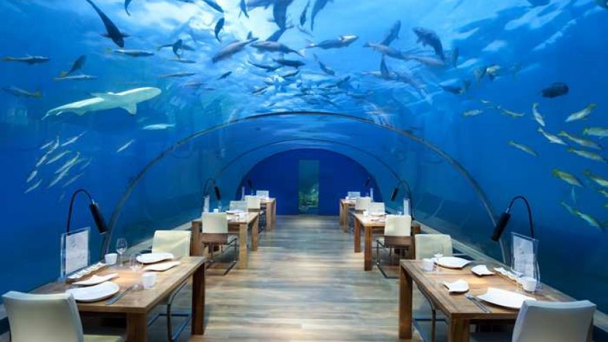 Được sử dụng chủ yếu cho việc ăn uống, các nhà hang dưới biển Ithaa tại khu nghỉ dưỡng Hilton Conrad Maldives đảo Rangali nằm 16 feet dưới mặt nước và có thể được chuyển đổi thành chỗ ngủ riêng. Với tầm nhìn 180 độ toàn cảnh, phòng thường 12 chỗ ngồi, nhưng đối với $ 815 một đêm nó có thể được làm thành một phòng dành cho hai người. Với nhà hàng phục vụ đồ ăn như trứng cá muối, bạn có thể mong đợi những tiện ích hang đầu cho một đêm tuyệt vời..