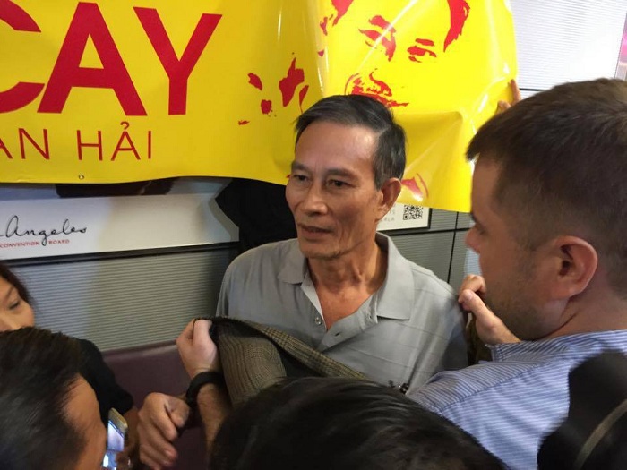 Hơn 200 người, Mỹ lẫn Việt, đã đón tiếp nồng nhiệt blogger tranh đấu Điều Cày Nguyễn Văn Hải khi ông đặt chân đến phi trường Los Angeles, trong số này có rất nhiều phóng viên các đài TV lớn của Hoa Kỳ.