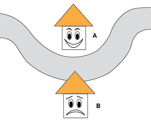 Con đường cong nhẹ nhàng "ôm" lấy ngôi nhà A. Đây là một vị trí rất thuận lợi cho năng lượng chảy vào nhà.