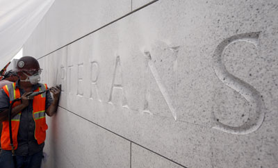 Một công nhân xây dựng làm việc tại Đài Tưởng Niệm Cựu Chiến Binh, Washington D.C.