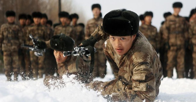 Lính Trung Quốc tham gia một buổi huấn luyện tại một căn cứ quân sự ở tỉnh Hắc Long Giang. Ảnh chụp ngày 29/10/2014/REUTERS/China Daily