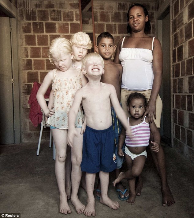 Tin tức trên Daily Mail cho biết, cô Rosemere Fernandes de Andrade và chồng Joao đều là người da đen nhưng ba trong số 5 người con của họ lại có làn da trắng bạch, mắt vàng, tóc xanh do mắc bệnh bạch tạng.