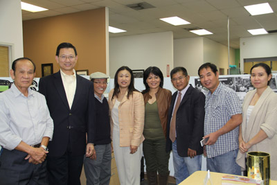 TNS đắc cử Janet Nguyễn tại tòa soạn báo Người Việt. Từ trái, phóng viên Nguyên Huy, Luật Sư Andrew Đỗ, chánh văn phòng của bà Janet Nguyễn, Luật Sư Phan Huy Đạt, tổng giám đốc Người Việt, TNS đắc cử Janet Nguyễn, nhà báo Hà Giang, nhà báo Đỗ Dzũng, nhà báo Khôi Nguyên và phóng viên Thiên An. (Hình: Ngọc Lan/Người Việt)