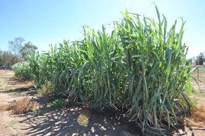 Một góc trồng mía thử nghiệm của ông Chín Đàm tại San Diego. (H́nh: Dân Huỳnh/Người Việt)