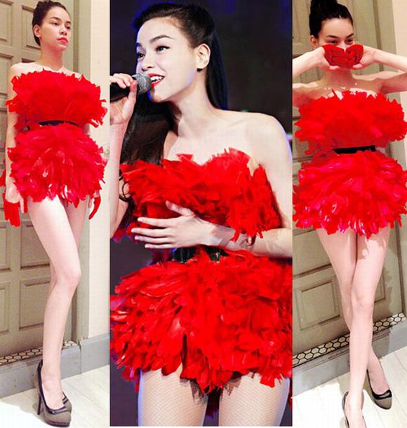 Hà Hồ xuất hiện nổi bật trong mẫu váy hồng mười giờ. Tuy nhiên, chiếc váy này khiến nữ ca sĩ mất đi vẻ sang trọng, quý phái của mình bởi từ màu sắc, chất liệu, kiểu dáng cho đến độ bóng bẩy của thiết kế đều vô cùng kém sang và lỗi mốt.