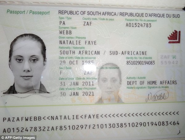 Qua ngày 13.11, Toporov tải lên trang Facebook của anh một bản sao hộ chiếu Nam Phi giả mà Lewthwaite được cho là đã dùng để nhập cảnh Ukraine. Hộ chiếu này mang tên Natalie Faye cùng ảnh chụp mái đầu Lewthwaite.