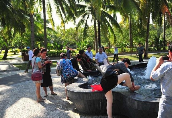Mới đây, một số du khách đến điểm du lịch Tam Á, Hải Nam, Trung Quốc đã có những hành động thiếu văn hóa gây bức xúc trong nhiều người. Họ ngang nhiên cởi bỏ giày dép rồi đưa chân vào bên trong đài phun nước để kỳ cọ, rửa chân. Một số người đã chụp lại cảnh tượng này và đăng tải lên mạng. Những bức ảnh nhanh chóng được chia sẻ và khiến nhiều người bức xúc.