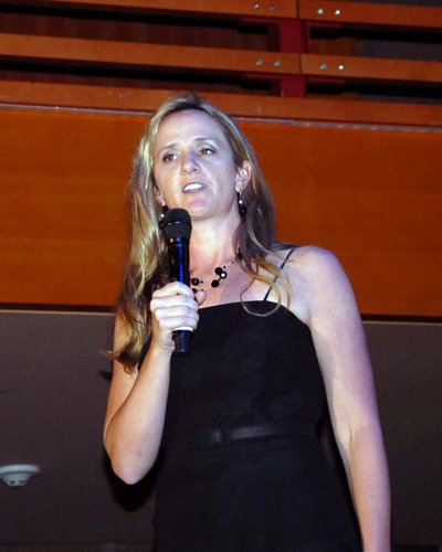 Bà Kerrie Downey, giám đốc chương trương trình Đa Văn Hóa của Diect TV, phát biểu. (Hình: Linh Nguyễn/Người Việt)