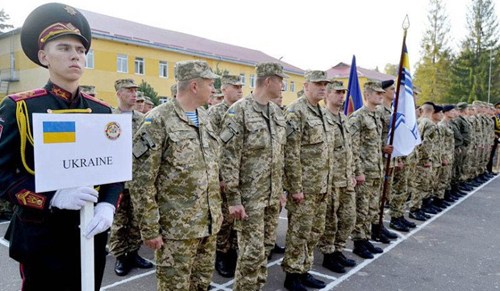 Các binh sĩ Ukraine tham gia một cuộc tập trận.