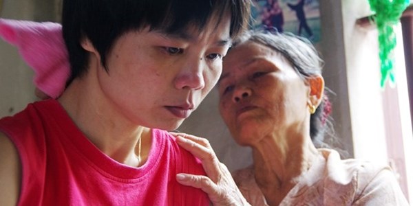 Bà Hường - mẹ Huệ - lúc nào cũng phải chảy nước mắt vì thương con khi ngày nào chị cũng nỗ lực tập đi với cái nạng từng bước, tự làm những việc cá nhân đơn giản mà cũng không nổi.Tay chân và mặt Huệ luôn có những vết thâm bầm, sướt sát do bị ngã.