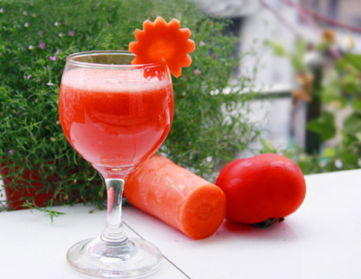 Sinh tố cà chua-cà rốt giúp đẹp da nhanh chóng.