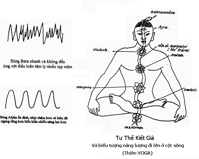 Các đạo sư Yoga cho rằng vị thế khóa nhau của hai chân trong tư thế kiết già sẽ tạo sức ép lên hai luân xa ở dưới cùng của cơ thể, khiến dòng năng lượng có khuynh hướng đi lên để nuôi dưỡng các trung tâm lực dọc theo cột sống và kiểm soát toàn bộ hệ thần kinh. Những thí nghiệm khoa học về Yoga cho thấy chỉ cần ngồi tư thế hoa sen, dù ta không cố gắng tập trung tư tưởng, vẫn có một sự thay đổi ở sóng não từ nhịp Beta khoảng 20 chu kỳ mỗi giây xuống nhịp Alpha khoảng 8 chu kỳ mỗi giây. Nhịp Alpha là tình trạng sóng não của một người đang trầm tĩnh và minh mẫn. Điều này có nghĩa là tự thân tư thế kiết già đã có công năng làm êm dịu thần kinh chưa kể đến những cố gắng khác của việc ngồi thiền.