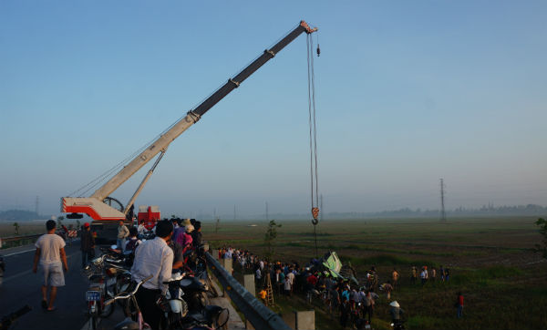 Tại hiện trường, chiếc xe hầu như nát bét nằm ngửa dưới ruộng cách mặt đường chừng 10m. Sáng cùng ngày, lực lượng cứu hộ đã cẩu chiếc xe khỏi hiện trường để phục vụ điều tra.