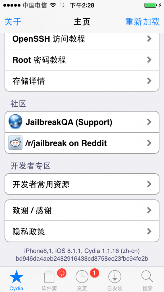 Phiên bản Cydia sau khi jailbreak bằng Taig vẫn là 1.1.16, hầu hết tweak tương thích iOS 8.1 đều có thể chạy tốt trên iOS 8.1.1.