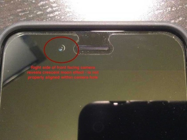 Nhiều người đã báo cáo rằng iPhone 6 có camera trước bị lệch sau một thời gian sử dụng (có thể họ đã phát hiện ra vấn đề này khi đang ‘tự sướng’). Như bạn có thể thấy ở những bức ảnh bên dưới, camera trước của iPhone 6 dường như bị lệch sang một bên và để lộ một vùng bán nguyệt nhỏ trông cứ như là cụm camera này đang lẩn trốn.