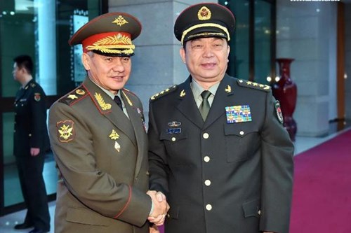 Bộ trưởng Quốc phòng Nga Sergei Shoigu và người đồng cấp Trung Quốc Thường Vạn Toàn.