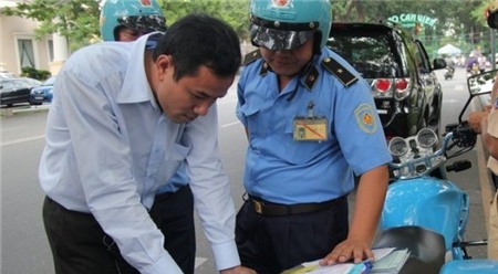 Thanh tra giao thông TP.HCM đang lập biên bản một "đối tác" của Uber.