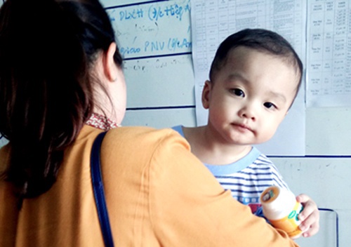 Bé trai được chăm sóc tại UBND phường 1, quận 8. Ảnh: Quốc Thắng.